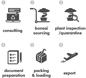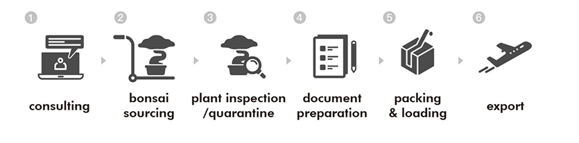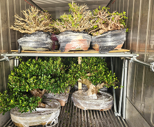 運送盆栽、庭園樹到海外前需要通過各種檢疫、檢查,每個國家的條件各不相同,要在符合法規之下將植株安全、健康的運輸到海外,這絕不是件簡單的工作。